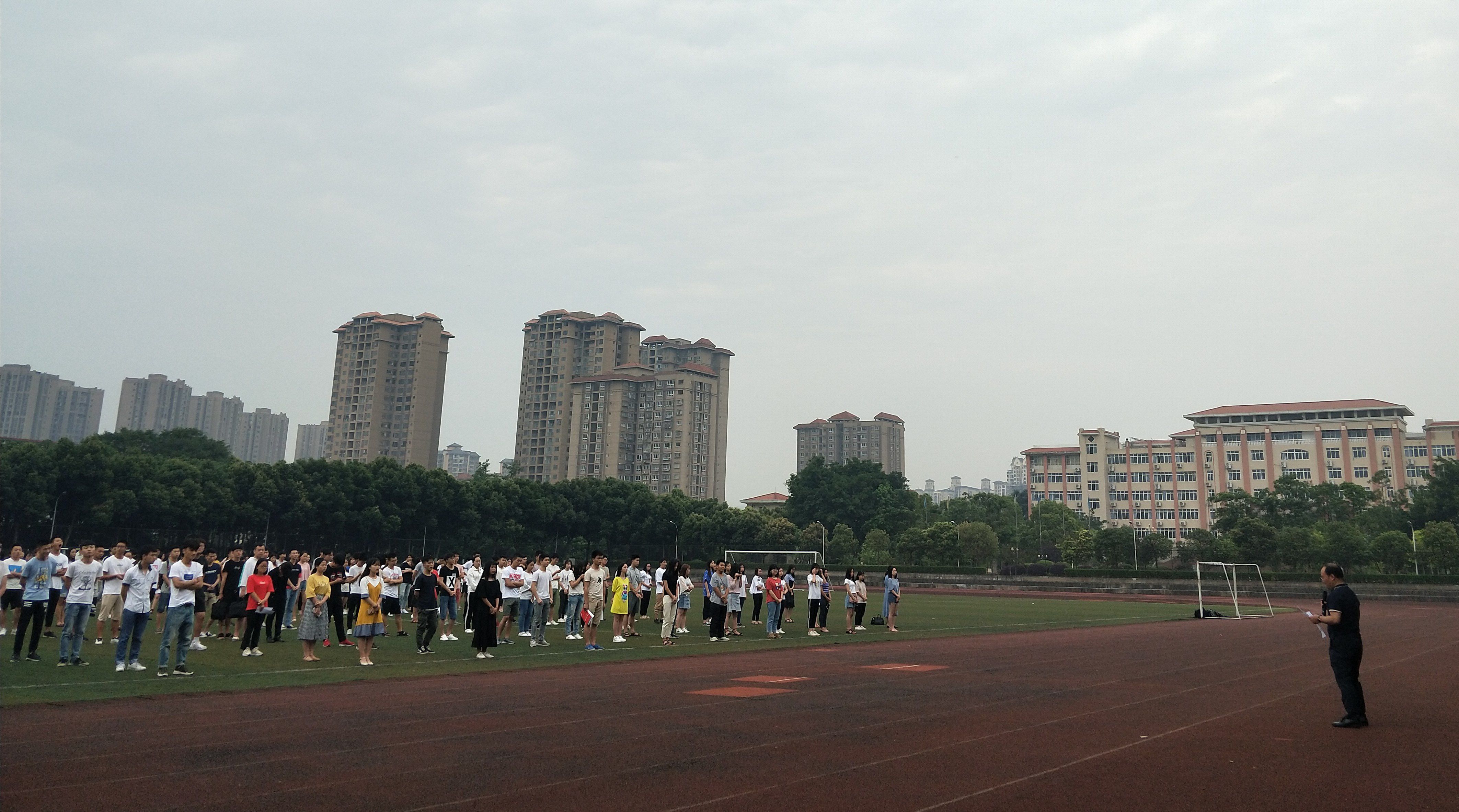 2018年6月11日早上7:20,由建筑工程系承办的太阳网集团tcy8722新学期第十四次升旗仪式在运动场隆重举行。建筑工程系党总支书记何春华、系主任韩永光及全体师生参加了本次升旗仪式。